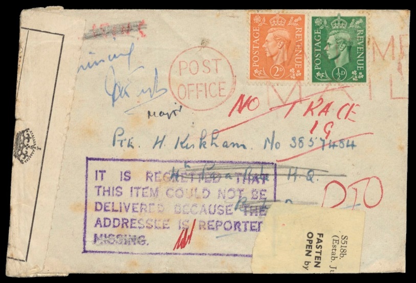 Private Harold Kirkham diende in het Defence Platoon van de 4th Parachute Brigade. Zijn broer Sidney, die diende bij de Royal Navy, stuurde hem op 24 september 1944 een brief, maar deze werd op 18 oktober 1944 teruggestuurd met de melding dat Harold vermist was na de Slag om Arnhem. Later bleek dat Harold op 19 september 1944 was gesneuveld; de brief is vermoedelijk het enige bestaande document dat door het veldpostkantoor van de 4th Brigade is gestempeld na de slag.