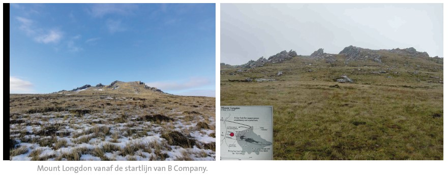 Vanaf dat moment was het verrassingselement weg en waren de Argentijnen gealarmeerd. Ze openden het vuur met alles wat ze hadden. Terwijl B Company in gevecht was, naderde A Company de opstellingen op Wing Forward. Ter plekke bleek dit een verre van ide-ale opstelling te zijn. Wing Forward lag veel lager dan de toppen van Longdon. Daarnaast bleek het zwaarte-punt van de Argentijnse opstellingen gericht te zijn te-gen een nadering vanuit het noorden. Vanuit de hoger gelegen opstellingen op Mount Longdon keken de Ar-gentijnen op A Company neer en kon men vanuit hun verdedigende opstellingen effectief vuur uitbrengen.