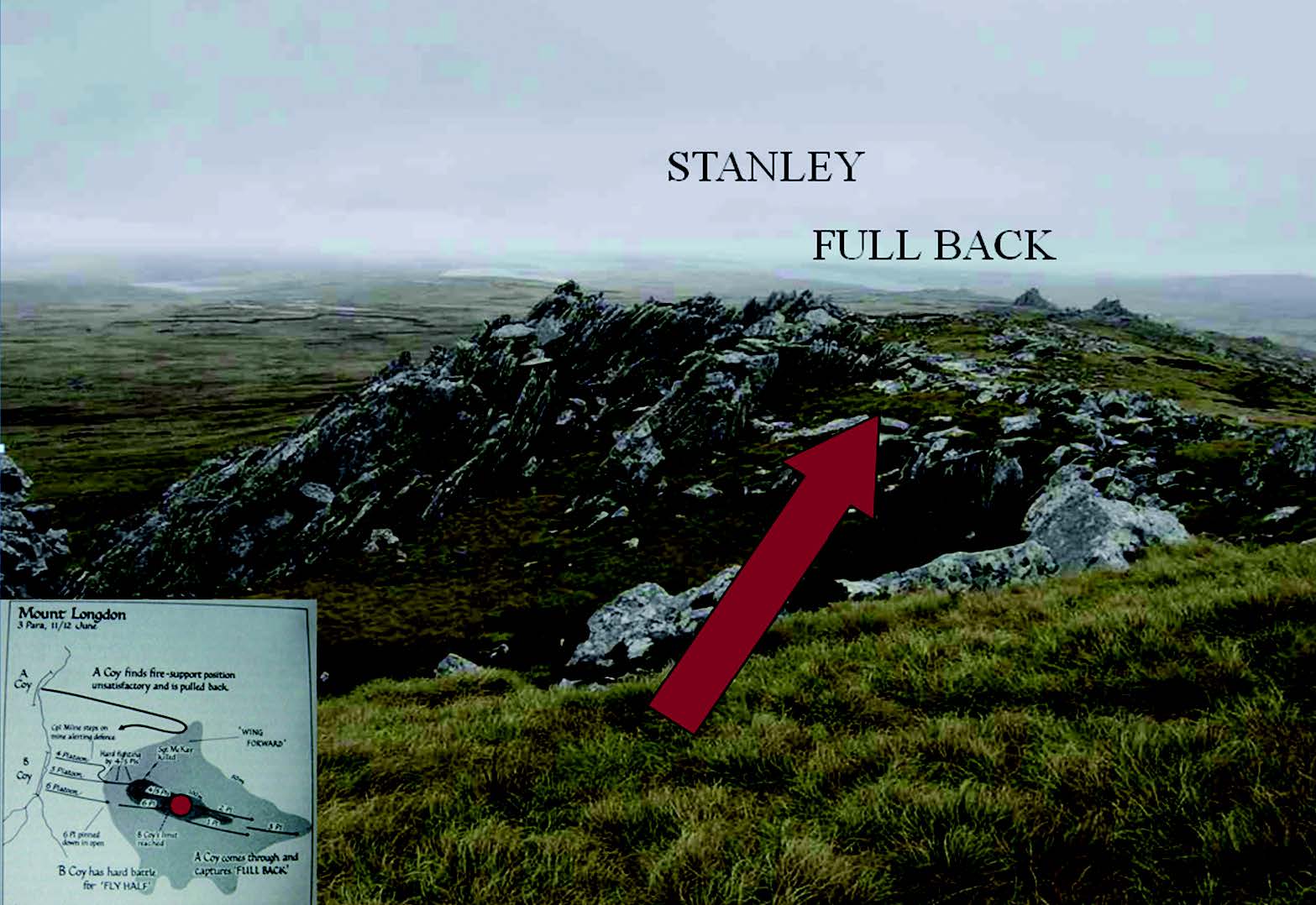 Met zware verliezen slaagde B Company er uiteinde-lijk in de eerste hogergelegen top ter hoogte van Fly Half te bereiken. De compagnie had dan al tien dode-lijke slachtoffers te betreuren. Met de gewonden erbij verloor de eenheid de helft van zijn sterkte. Omdat de compagnie niet sterk genoeg was de aanval verder voort te zetten naar Full Back, werd besloten A Company het gevecht van B over te laten nemen. In tegenstelling tot het eerste deel van de aanval kon de vervolgaanval nu wel met artillerie worden ondersteund. Een vuurba-sis bestaande uit diverse MAG-mitrailleurs vanuit het hoger gelegen deel van Mount Longdon bracht nog meer vuurkracht. Met relatief lichte verliezen bereikte A Company de oostelijke kant van Mount Longdon.