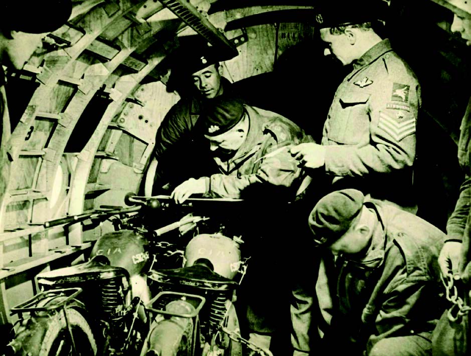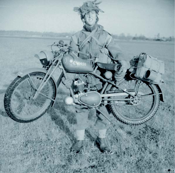 De Britse parachutisten waren tijdens de oorlog uitgerust met diverse motorfietsen.