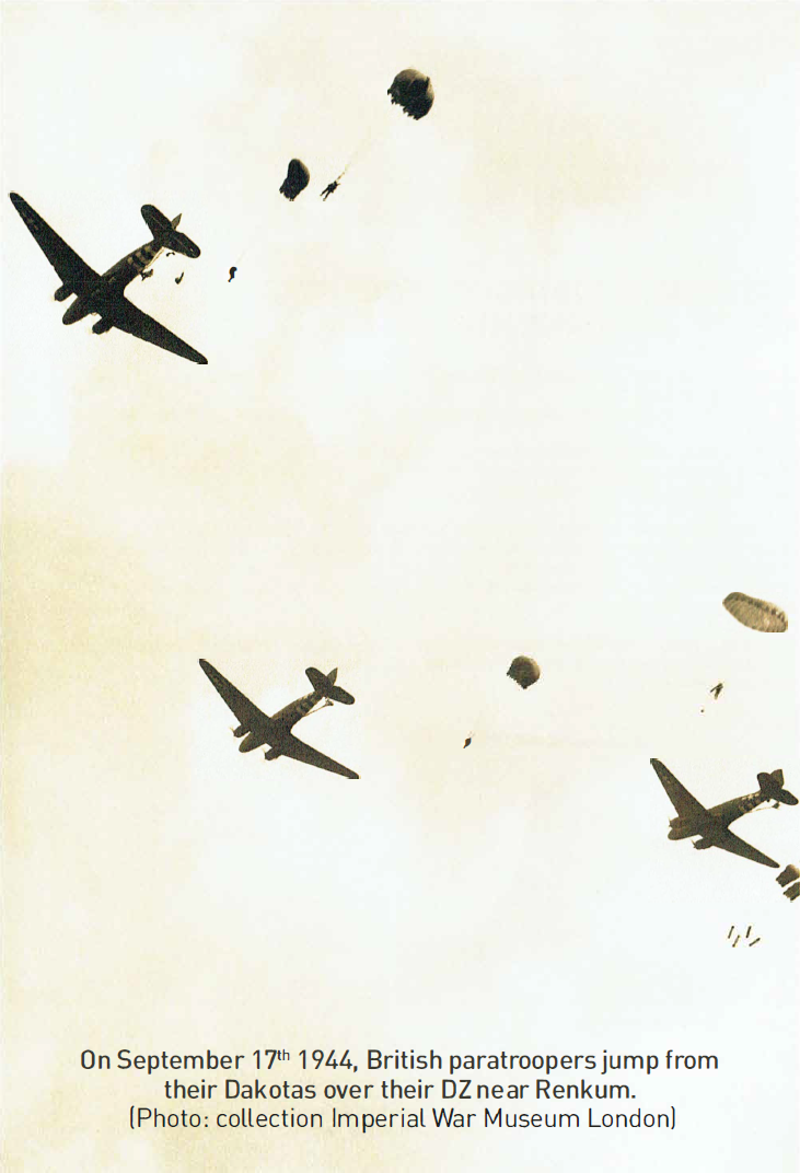 Behind the Museum, exactly on the spot where Maj.Gen Urquhart posed in Sept 1944 for one of the photographers from the Army Film and Photographic Unit, now stands an enlargement of the photo taken then. Thus the visitor can see that he/she stands on very historical ground. IPhoto Robert Voskuil)