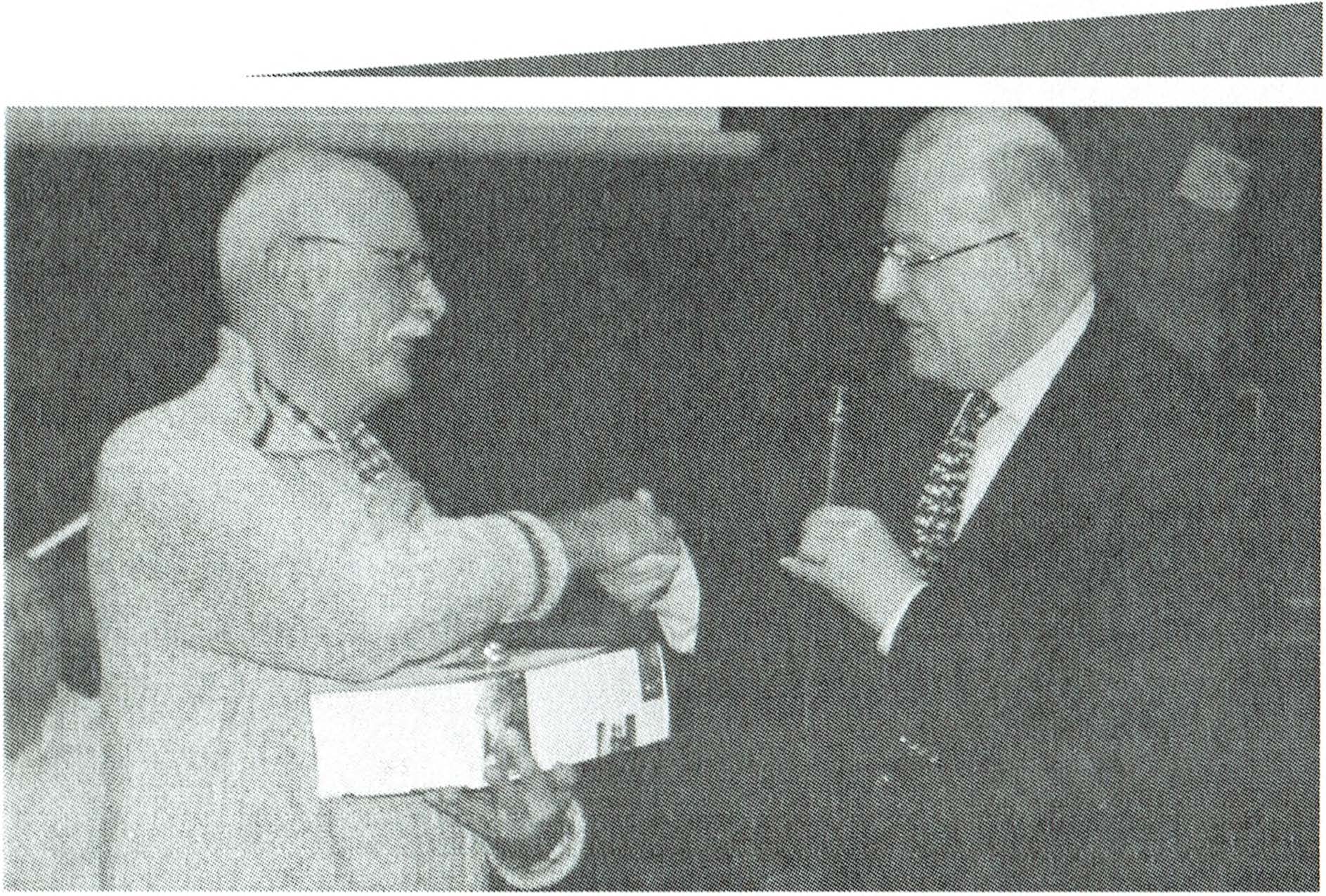 Management member Robert Voskuil, receives his deed from Chairman, Ben Kolster, that accompanies his appointment as “Member of Merit of the SFAM” (Photo: Frits Miedema)