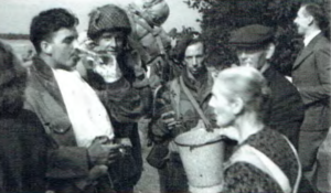 Mr and Mrs Pennings Senior on the road in front of the farm, give water to the just dropped paratroops. To the right Jan Pennings in his best suit. IPhoto Sgt Mike Lewis IAFPU) – Collection: Imperial War Museum London.