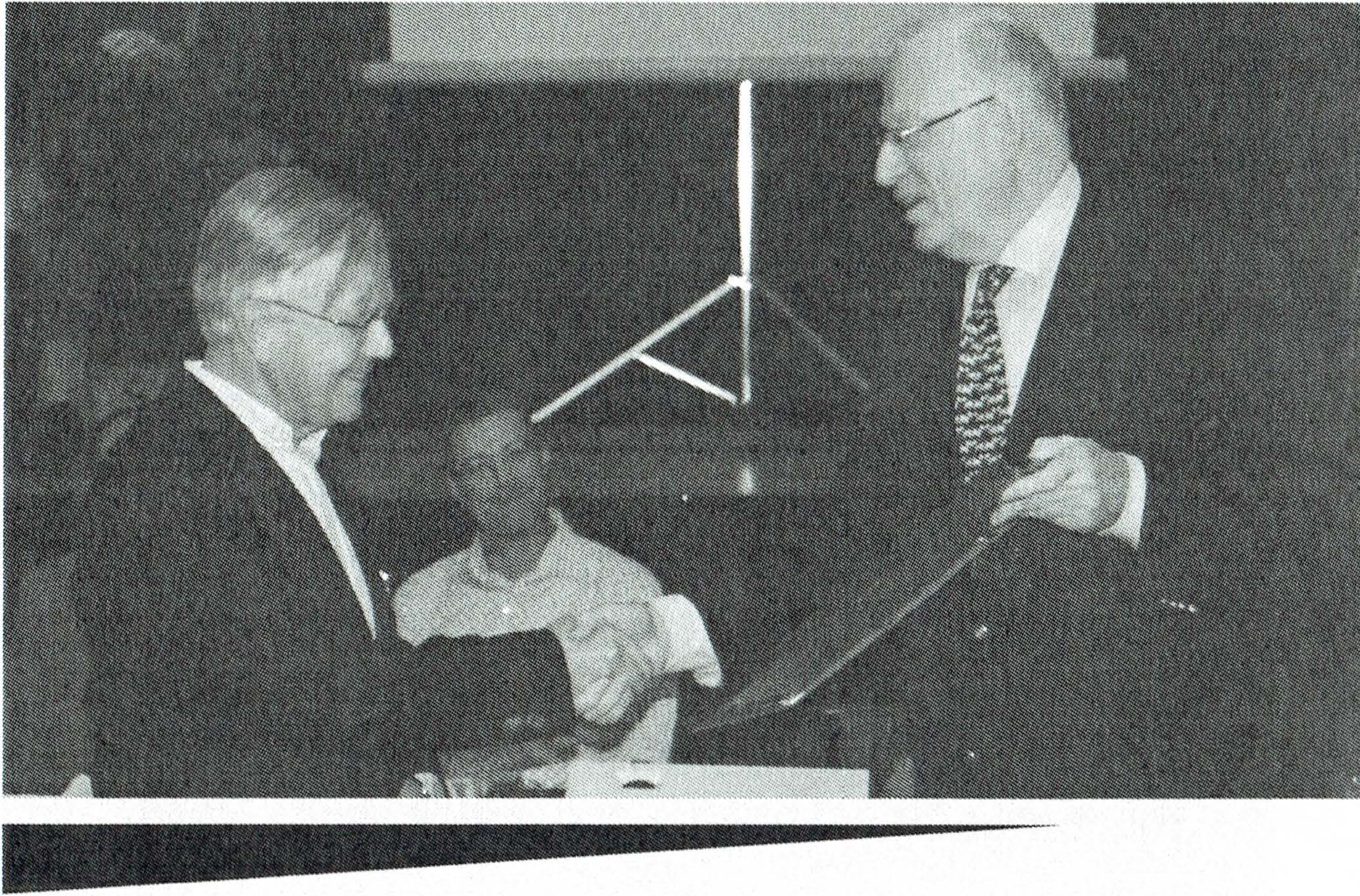 Management member Robert Voskuil, receives his deed from Chairman, Ben Kolster, that accompanies his appointment as “Member of Merit of the SFAM” (Photo: Frits Miedema)