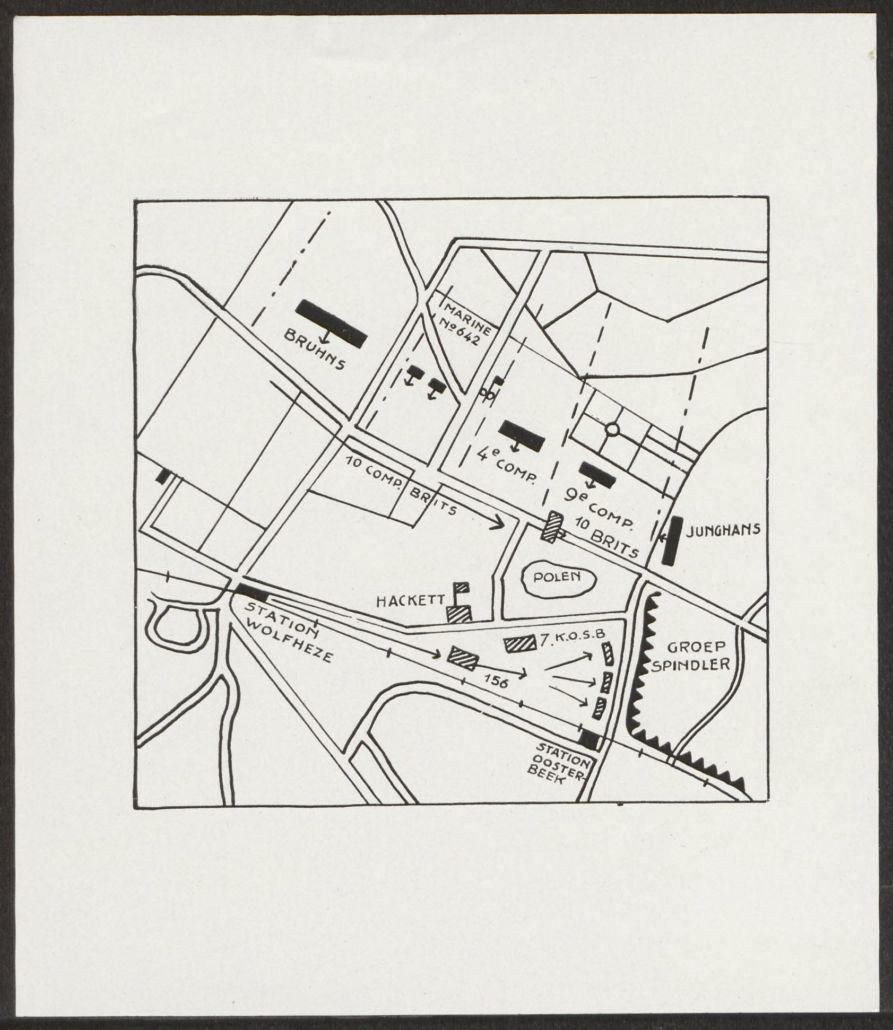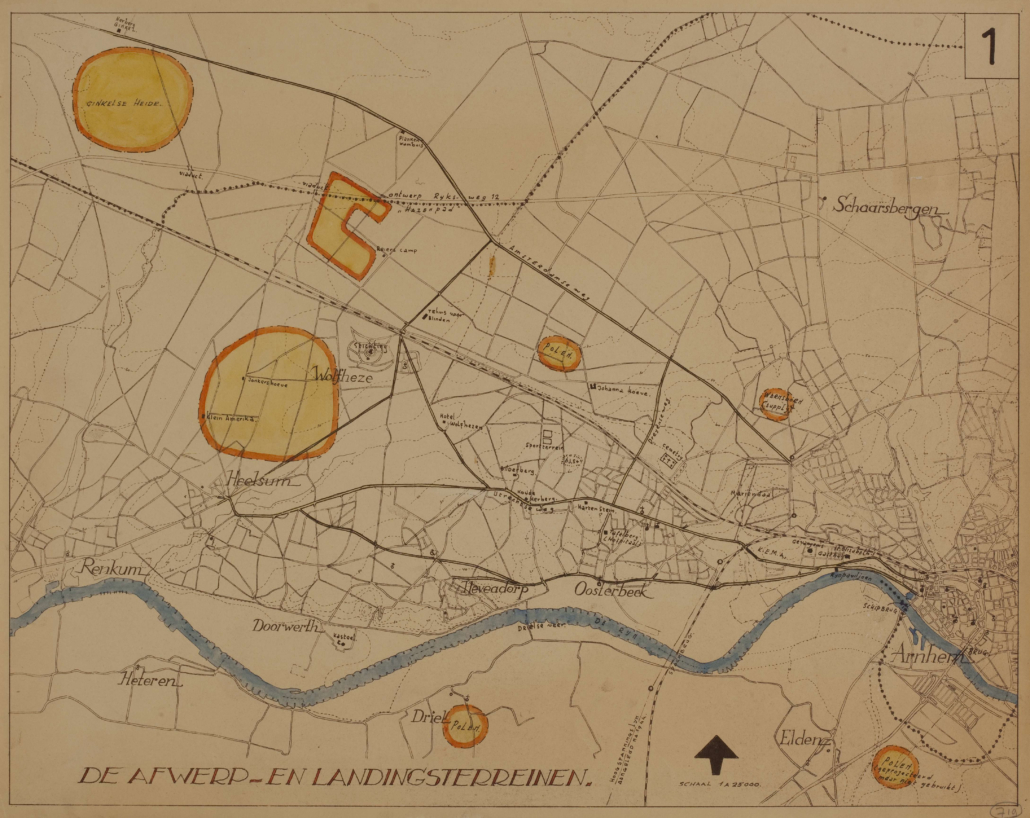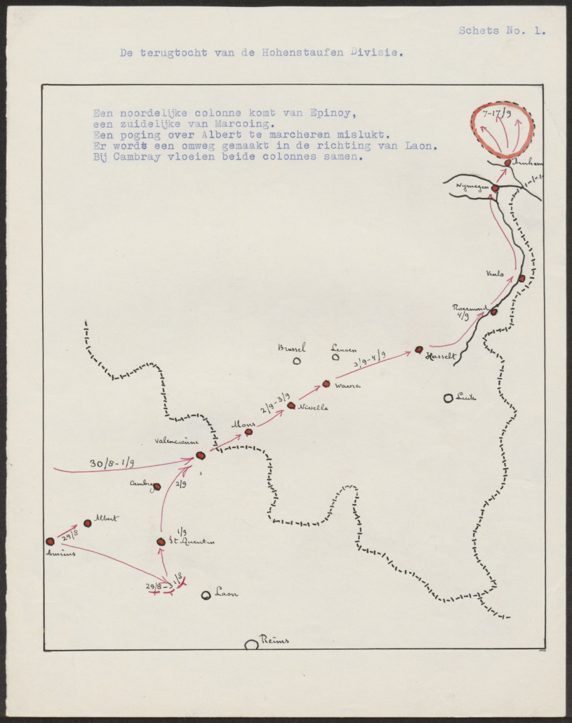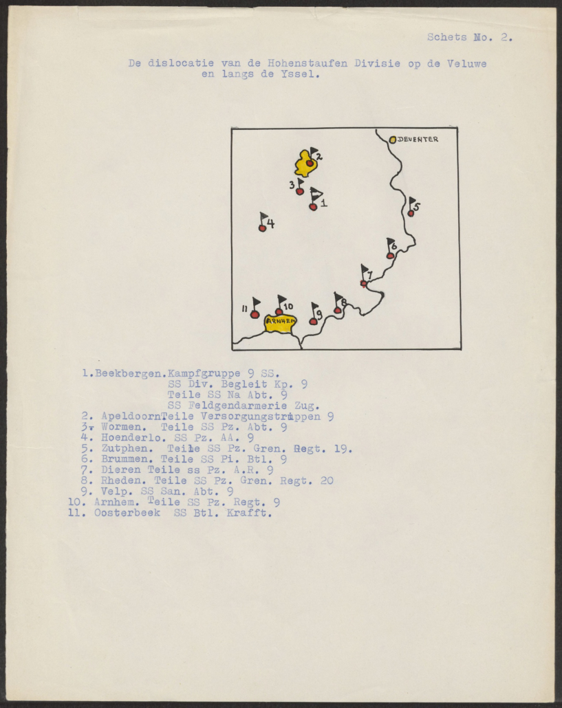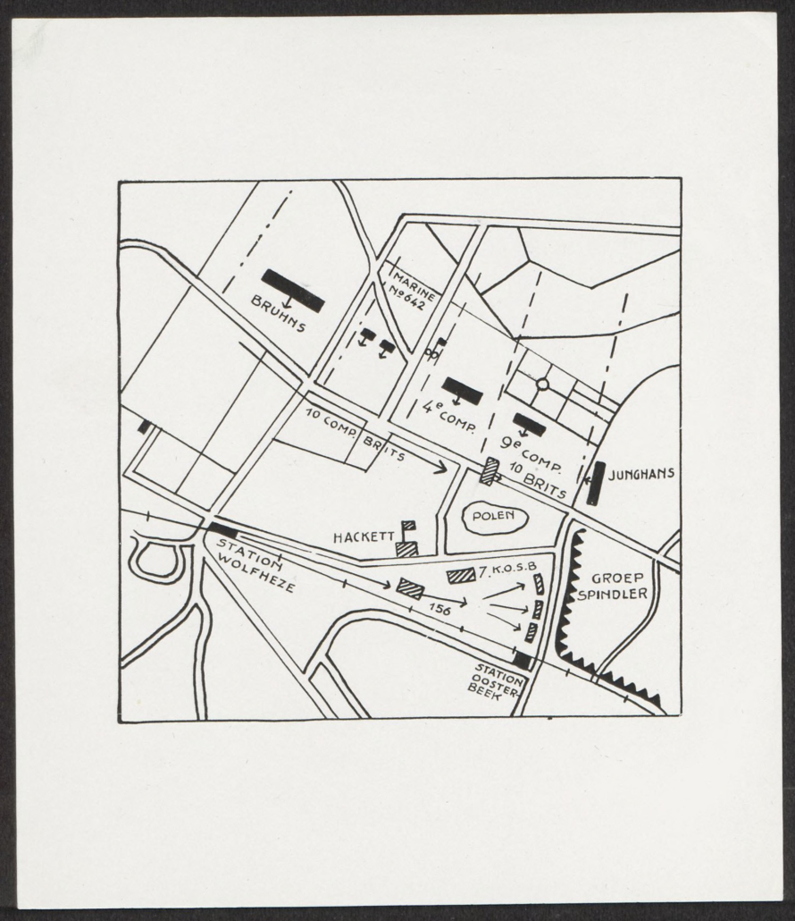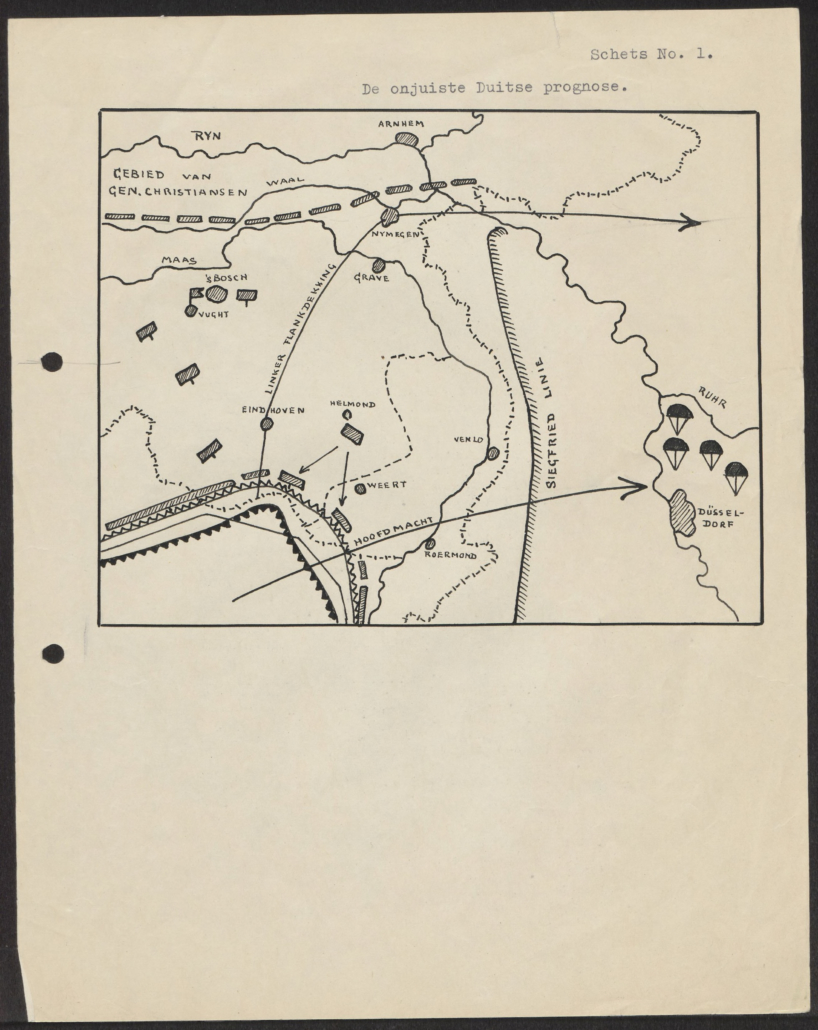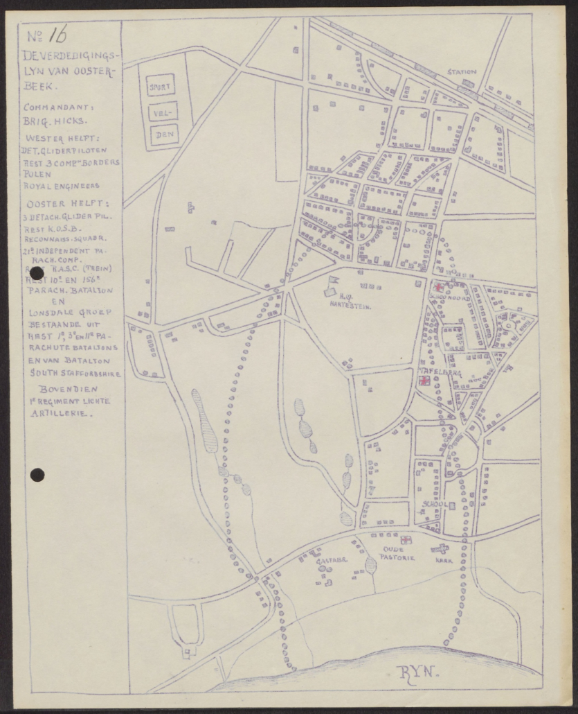 N.B. Kopieën van 23 door Boeree eigenhandige gemaakte kaarten (kwarto-formaat) waarop de troepenbewegingen en posities tijdens de belangrijkste fasen van de Slag om Arnhem zijn ingetekend. Een aantal van de hier beschreven schetsen heeft gediend als basismateriaal voor de grotere formaten die Boeree maakte met het oog op lezingen (zie nr. 52) en voor de calques met bijbehorende lichtdrukken die door de Arnhemse Dienst van Gemeentewerken zijn vervaardigd (zie nr. 53). Vgl. ook de nrs. 3c en 3e van dit overzicht.Kaarten van Boeree