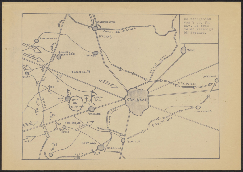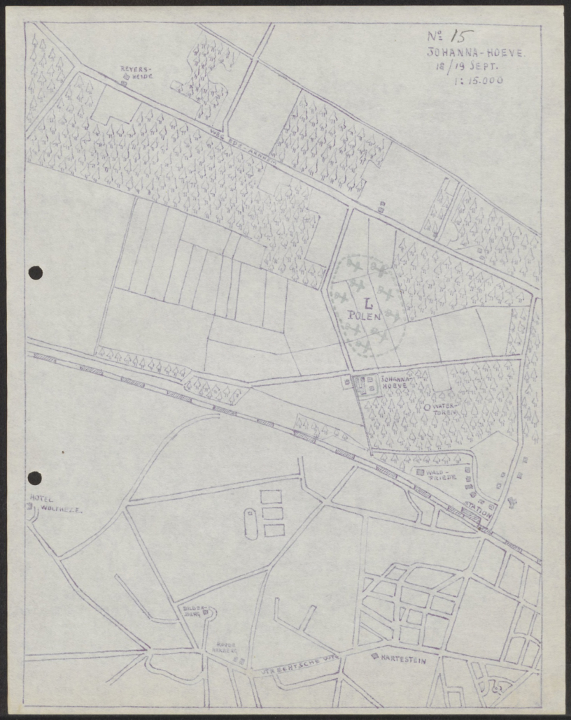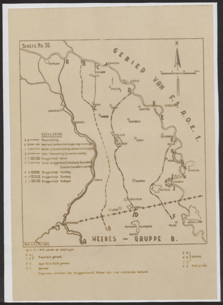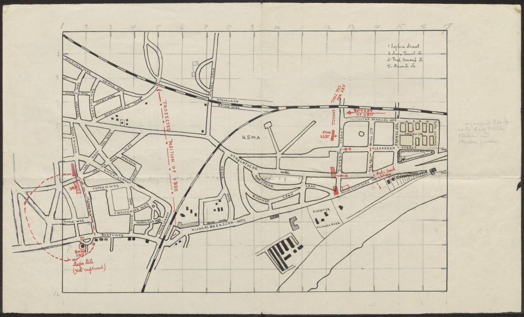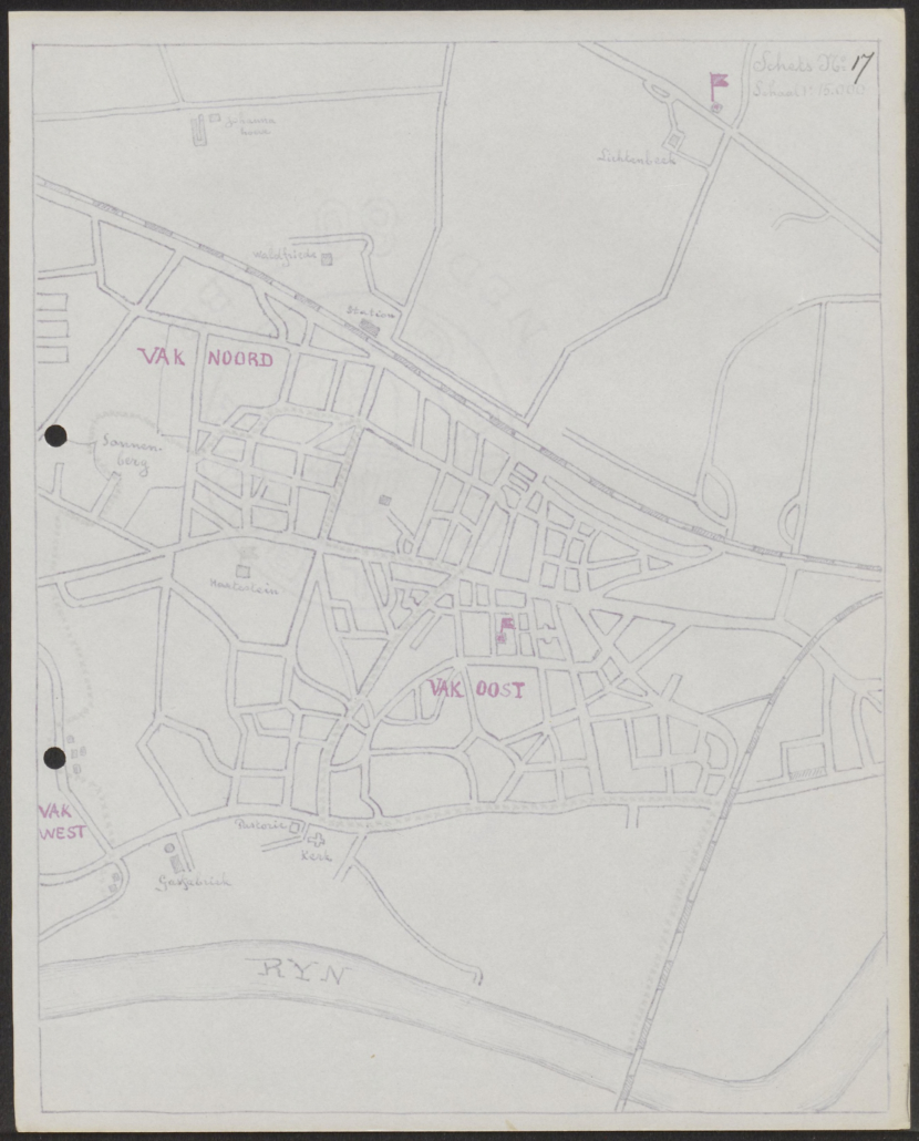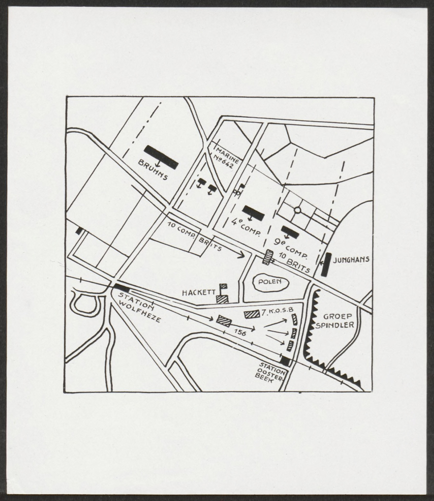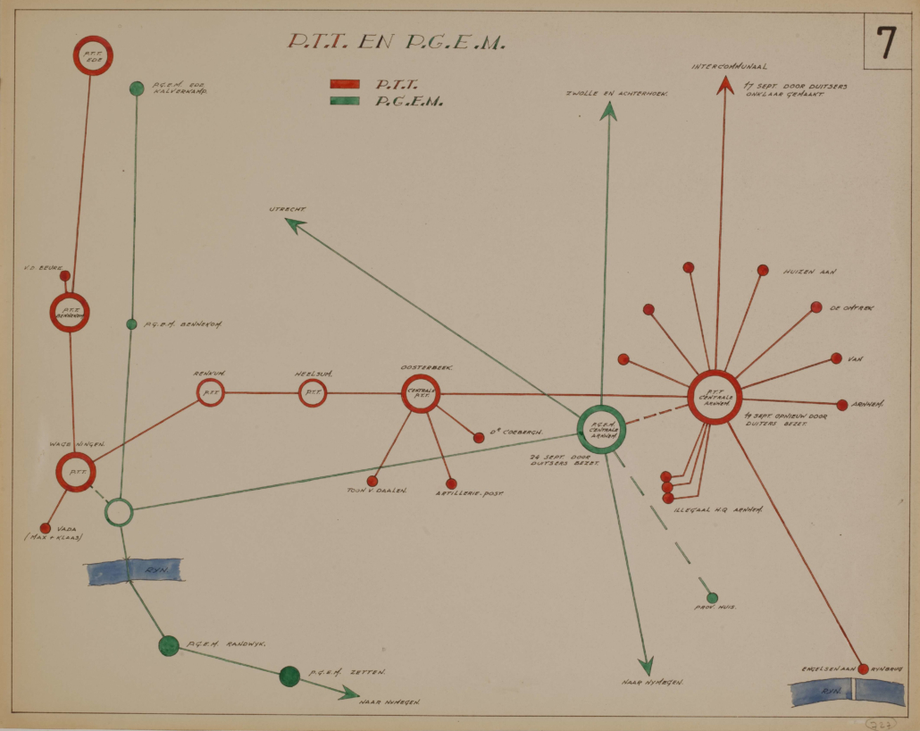 N.B. Kopieën van 23 door Boeree eigenhandige gemaakte kaarten (kwarto-formaat) waarop de troepenbewegingen en posities tijdens de belangrijkste fasen van de Slag om Arnhem zijn ingetekend. Een aantal van de hier beschreven schetsen heeft gediend als basismateriaal voor de grotere formaten die Boeree maakte met het oog op lezingen (zie nr. 52) en voor de calques met bijbehorende lichtdrukken die door de Arnhemse Dienst van Gemeentewerken zijn vervaardigd (zie nr. 53). Vgl. ook de nrs. 3c en 3e van dit overzicht.Kaarten van Boeree
