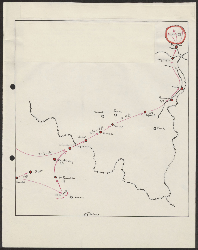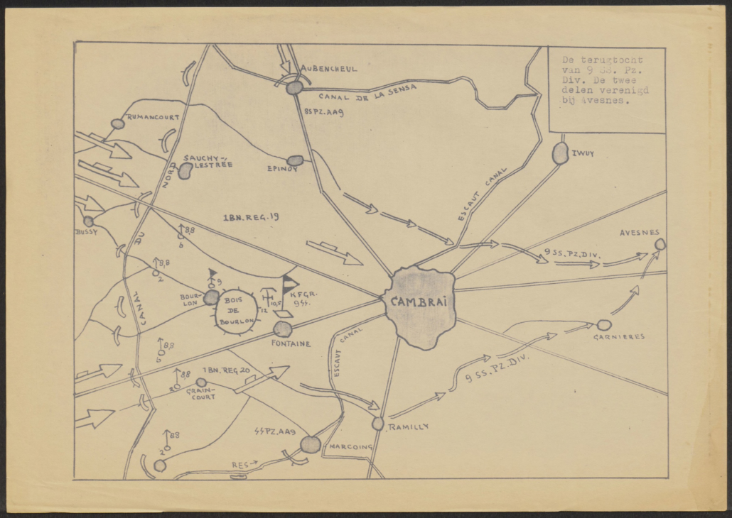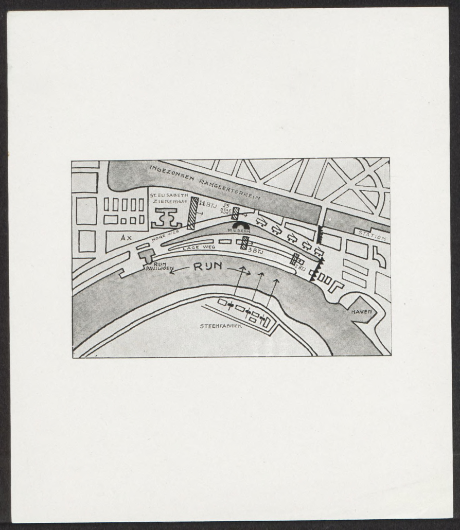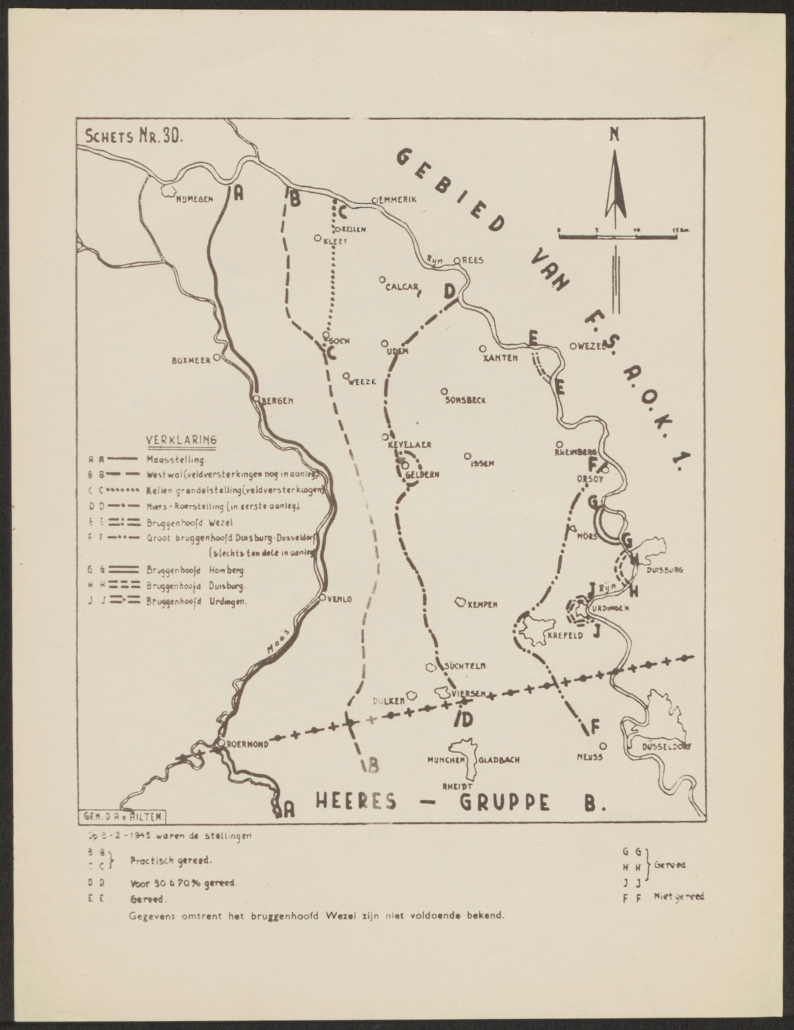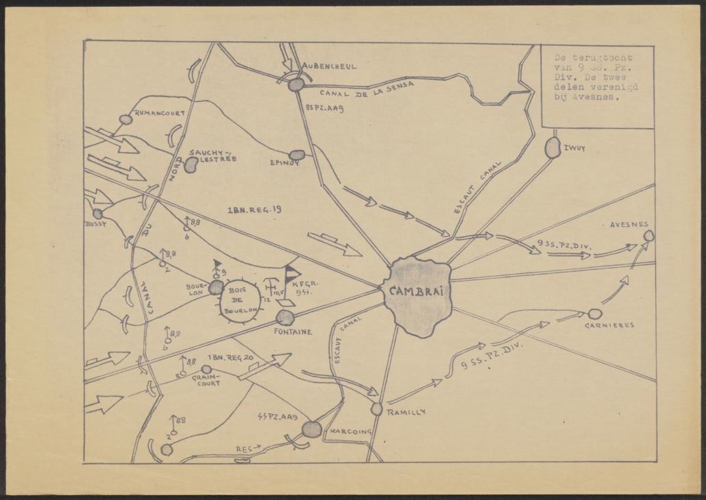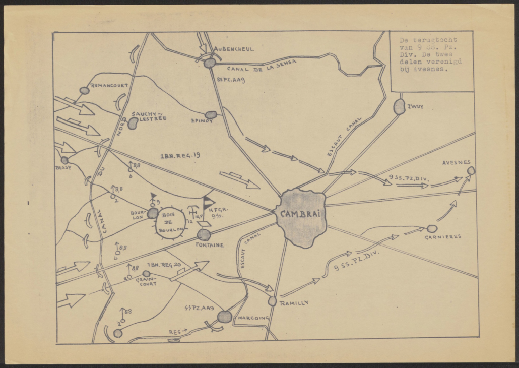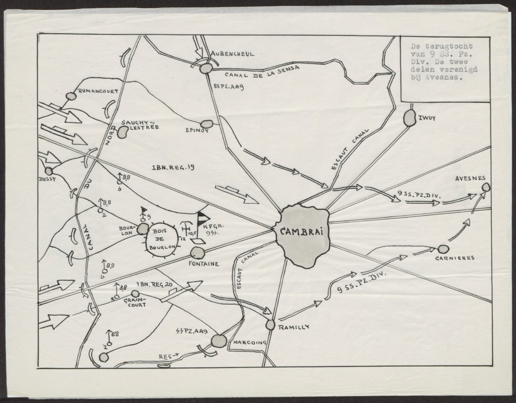 N.B. Kopieën van 23 door Boeree eigenhandige gemaakte kaarten (kwarto-formaat) waarop de troepenbewegingen en posities tijdens de belangrijkste fasen van de Slag om Arnhem zijn ingetekend. Een aantal van de hier beschreven schetsen heeft gediend als basismateriaal voor de grotere formaten die Boeree maakte met het oog op lezingen (zie nr. 52) en voor de calques met bijbehorende lichtdrukken die door de Arnhemse Dienst van Gemeentewerken zijn vervaardigd (zie nr. 53). Vgl. ook de nrs. 3c en 3e van dit overzicht.Kaarten van Boeree