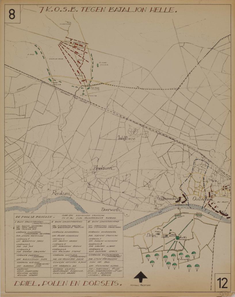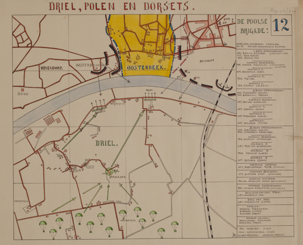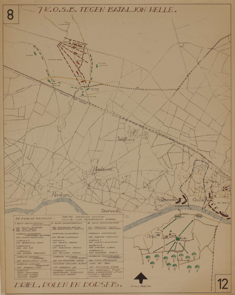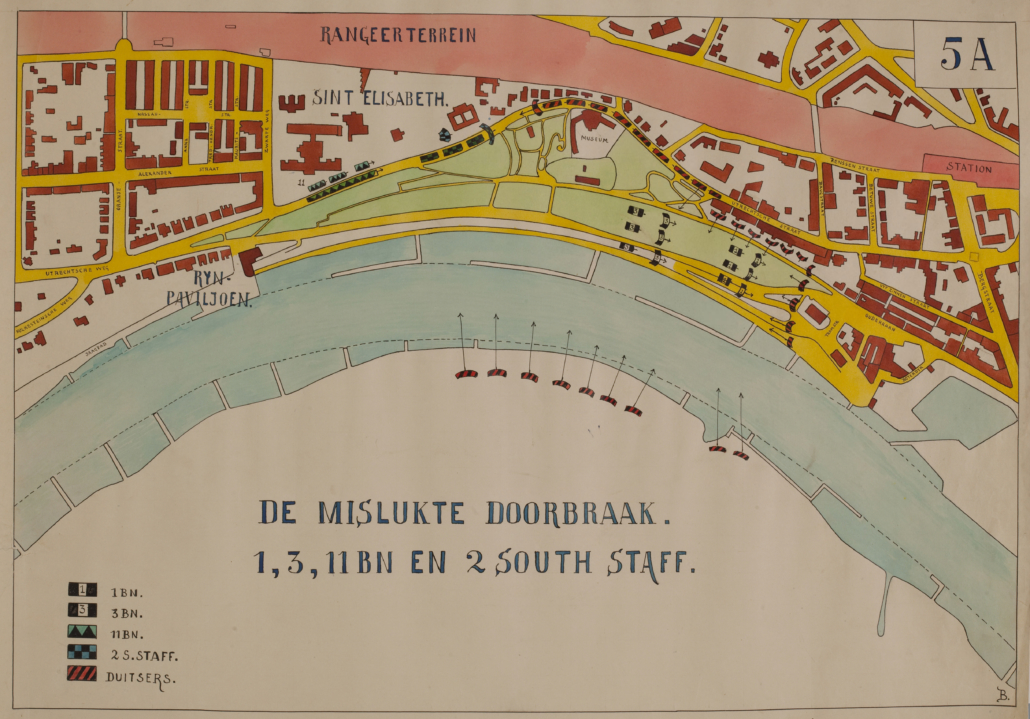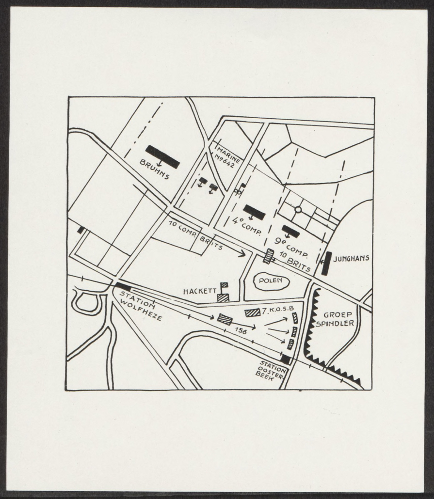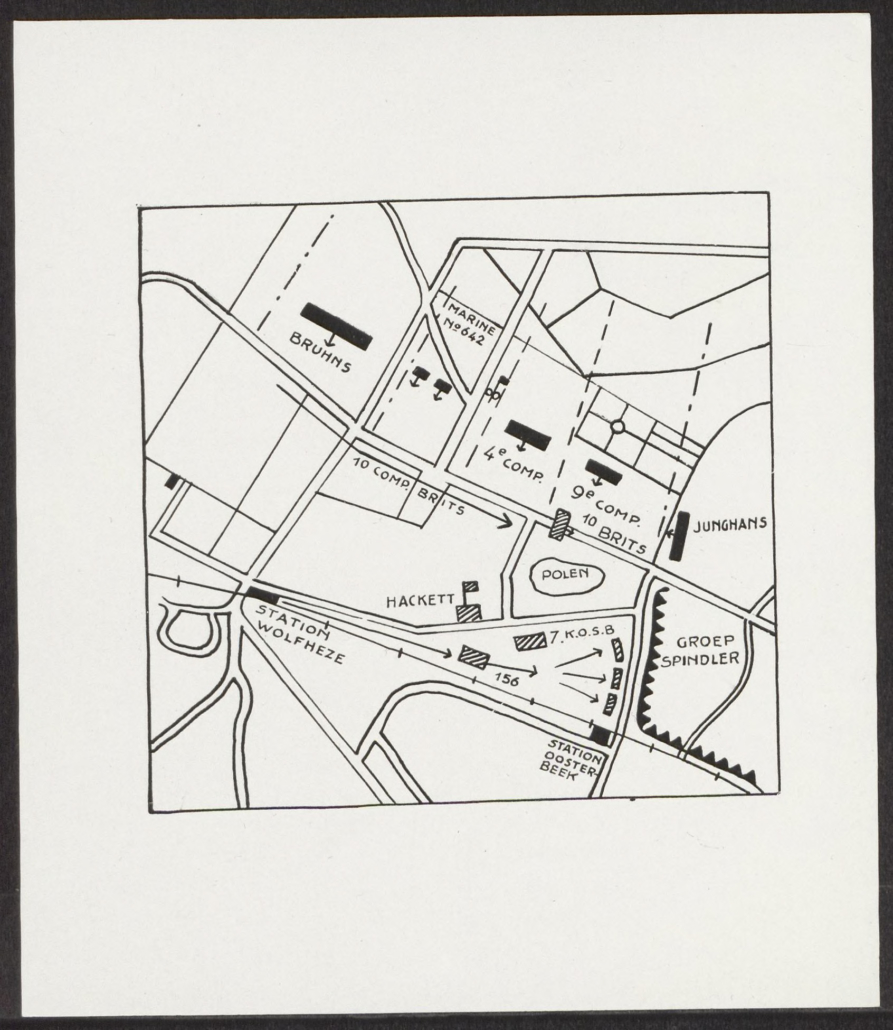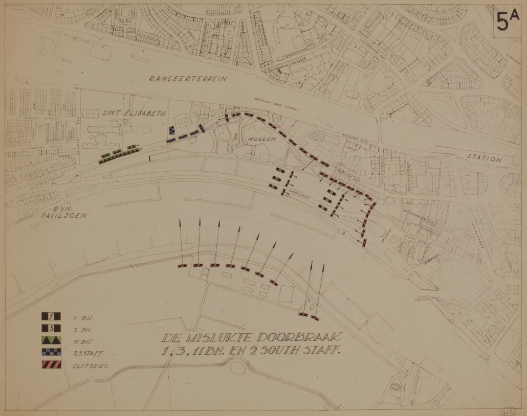 N.B. Lichtdrukken van (niet meer aanwezige) calques, door de Arnhemse Dienst van Gemeentewerken vervaardigd op aanwijzingen van Boeree, aan de hand van de in nr. 51 vermelde originele getekende kaarten. Van kaart 2 is kennelijk geen calque gemaakt; in elk geval ontbreekt de lichtdruk. Toegevoegd is een nieuwe kaart 5: “De marsch van de 1e Para-Brigade”; de oorspronkelijke kaart 5 (“De mislukte doorbraak”) heeft hier het nummer 5a gekregen. De gegevens van kaarten 8 en 12 zijn hier op één blad gecombineerd. Van een aantal kaarten zijn meer exemplaren aanwezig.