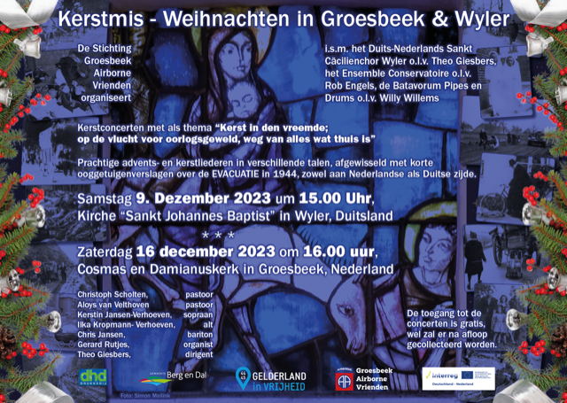De Stichting Groesbeek Airborne Vrienden organiseert in samenwerking met het Duits-Nederlandse Sankt Cäcilienchor Wyler twee kerstconcerten met als centrale thema ‘Kerst in de