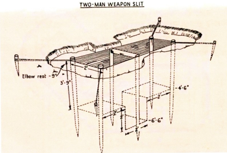 This is a reconstruction of an British one-man gunfighters manhole from World War Two. It is, with little adjustments, carried out according to the “ Infantry Manual” for the British Army from 1944. Out of respect for the soldiers we dug this manhole by hand. The construction, executed by five members of the Working group World War Two of the voluntarily archelogical society AWN, department 17, took about 4 hours. Of course the soldiers during operation Market Garden in September 1944 had no time to make this model manhole. They simply dug a, deep as necessary, hole in the ground. You can still see this authentic manholes, as reminiscent deepening’s in the earth some 100- 150 meters to the South, near the big pond. Still, by descending in this manhole, you can experience what the soldiers in the World War Two must have felt. Across the fields and forests, in front of the manhole, the Germans must have approached. During the digging of this manhole some ten British and German bullets/ sleeves were found. Most surprising found; a jacket button of the 81th regiment of the Napoleonic Army (early 1800). The walls of this manhole are made from wood harvested in the forest around this place; pseudo Acacia Robinia for the piles and Douglas for the planks, both untreated.