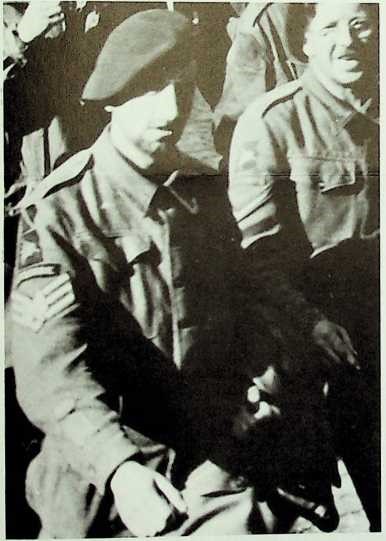 Rechts naast de “signaller” loopt Lance Corpoial J.C.O. Lothian, “company clerk” van de C-Compagme van de K.O.S.B., zónder tartan.(Foto: Bundesarchiv, Koblenz)