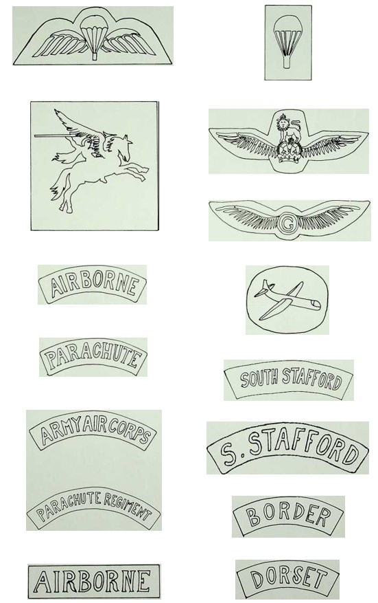 1. “Wing Qualified Paratroeper”. Op 28 december 1940 werd dit vaardigheidsembleem voor Britse parachutisten ingevoerd. Men droeg op elke mouw van de battle dress een exemplaar. Op de smock werd er slechts één gedragen, op de rechtermouw.