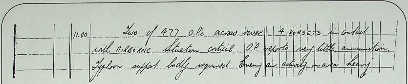 Het vuurplan was voor ons samengesteld door majoor Philip Towers en luitenant Paddy de Burgh, stafofficieren van de artillerie van Ist Airborne Division. Het Oorlogsdagboek vermeldt dat we van 04.00 – 06.00 uur een rookgordijn legden om de oversteek van achterblijvers te dekken.