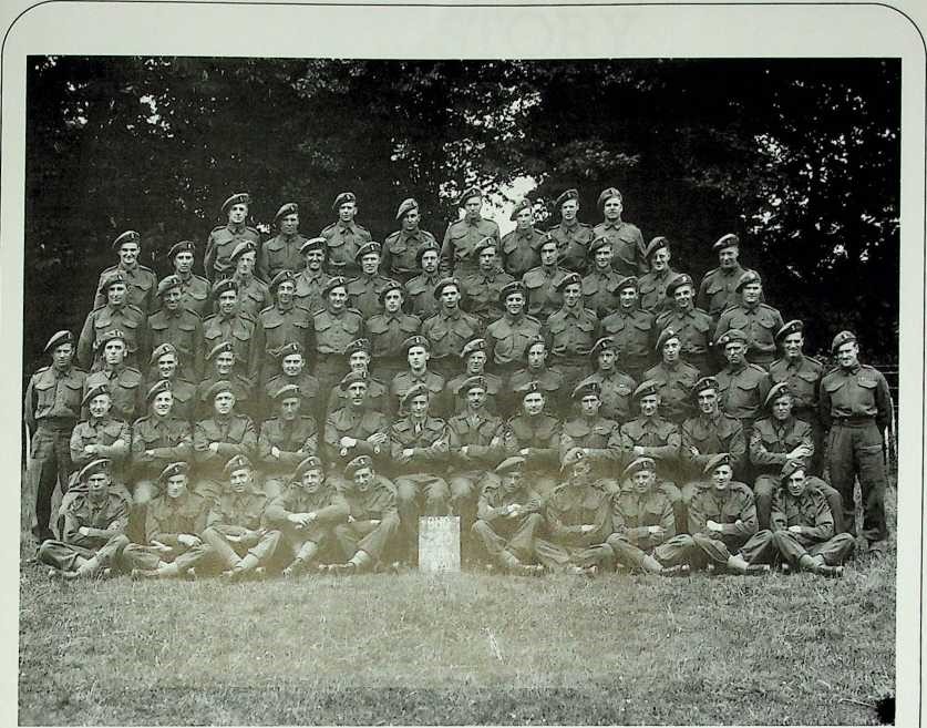 Het hoofdkwartier van 220th Field Battery, Royal Artillery. Douglas Goddard zit op de op één na voorste rij, achter het bordje dat de eenheid aangeeft. De foto werd genomen in mei 1944, kort voordat de inscheping voor de invasie in Normandië zon plaatsvinden. (foto: collectie auteur)