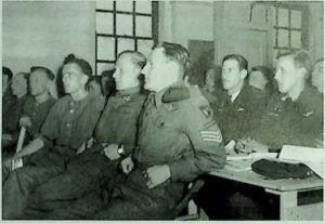 ‘Tugs and Gliders’, pagina 27: “Zweefvliegtuigpiloten en RAF-bemanningsleden tijdens het uitreiken van de orders voorafgaand aan een operatie”.