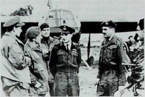 – Sergeant ‘Jock’ Ferguson en Staff Sergeant ‘Eddie’ Edwards, beiden A-Squadron, Glider Pilot Regiment. Ondanks dat de twee zweefvliegtuigpiloten en de twee RAF-bemanningsleden op één foto staan, vlogen zij in verschillende sleeptoestel-zweefvliegtuigcombinaties.