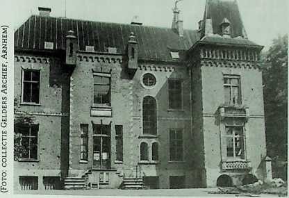 De voorkant (de zuidoostgevel) van Huize de Sonnenberg, gefotografeerd in 1943 of 1944. In de toren links had majoor Perkins in het begin van de strijd zijn hoofdkwartier.