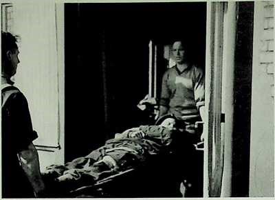 Een gewonde Britse militair wordt kort na de landingen binnengedragen in het ‘Dressing Station’ van 181 Airlanding Field Ambulance in een huis aan de Duitse kamp weg 9 in Wolfheze. (Foto Imperial War Museum, Londen, BU 1158)