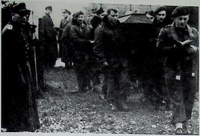 Winter 1944/1945. Father D. McGowan leidt een begrafenis in een krijgsgevangenkamp (Dulag-Luft) bij Wetzlar in Duitsland. (Foto: collectie Airborne Museum)