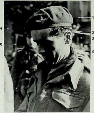 en boven de linkerschouder van de Brit is net een schouderepaulet van een derde Duitser te zien. Uit de onderscheidingstekens op kraagspiegel en mouw kan worden opgemaakt dat in ieder geval de eerste twee behoren tot een eenheid van de Waffen-SS.