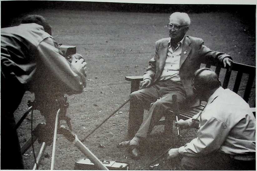 Ex AFPU camera-man Gordon Walker talks about his experiences during the Battle of Arnhem in front of the video-camera of Bal Video Productions.