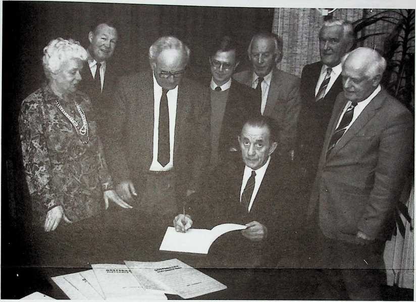 Mr. Lammercs signs the first copies of his book “Oosterbeek September 1944”.