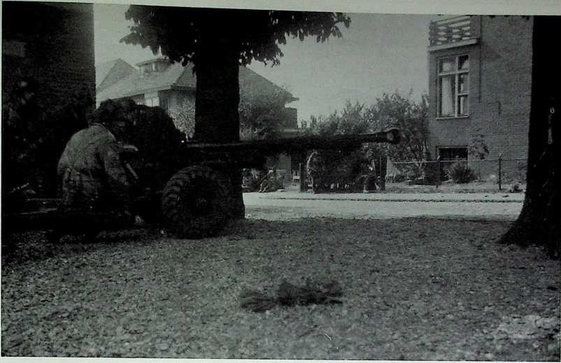 A’n unknown photograph of Tzhe Battle~of Arnhem,-taken-by Mr McFarlane on September 18th or 19th,1944.Location:corner of Utrechtseweg.Klingelbeekseweg.The houses in the background stand along the Klingelbeekseweg.The 6-pounder gun has been trained on the Utrechtseweg and the area behind,”Den Brink”,now the KEMA.