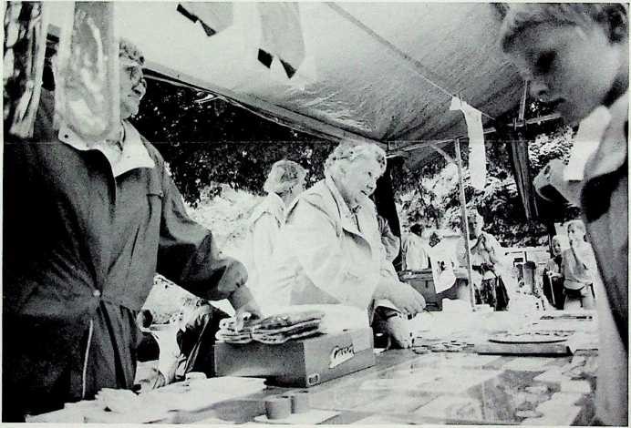 Our Secretary,Mieke de Langen,selling articles for the Society during the Airborne one day walking-tour. (Photo:C.van Roekel)