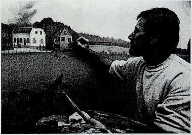 Artist Huub Milder puts the finishing touches to the rear wall of the diorama.