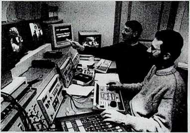 Berry de Reus and Joop Bal work on the audio-visual presentation for the refurbished Airborne Museum in the Bal Bedrijfsvideo studio.
