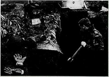 The experts from the Burials unit also found a Glider Pilot Regiment badge, a wallet, a gold signet ring with initials, an officer’s whistle, a silver cigarette case, a wristwatch, a Lee Enfield rifle complete with attached bayonet and a parachutist’s fighting knife. Only one skull, with a complete set of teeth, was found. With the aid of the British authorities and others, Lieutenant Jongen hopes that positive identification can be made before the 50th commemoration. Members of our society who think they can provide relevant information are asked to contact the editorship of this newsletter; Geert Maassen, Jan van Riebeeckweg 6861 BH Oosterbeek.