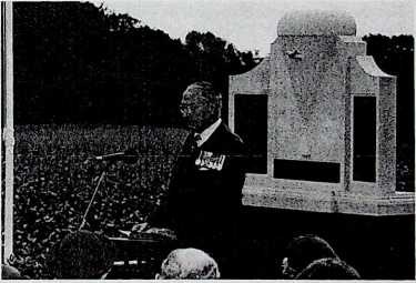 Colonel Rupert Wallis, vice president of the organising committee, makes a speech during the unveiling of the memorial to the Air Despatchers who lost their lives during the battle (18 September 1994).