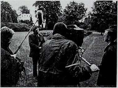 Colonel Paddy de Burgh is interviewed for the video documentary ‘We’ll See You In September’ at the place in the Hartenstein Park where artillery headquarters was located in September 1944.