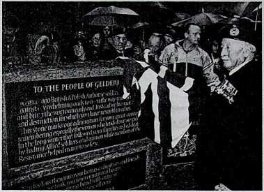 You took us into your homes as fugitives and friends, we took you forever into our hearts. This strong bond will continue long after we are all gone.’ The Queen’s Commissioner for Gelderland, Mr. J. Terlouw, thanked General Hackett for this emotive monument. ‘