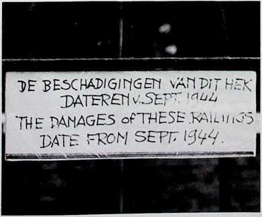 During the recent September commemorations an inhabitant of the Beneden-Weverstraat in Oosterbeek attached, alas temporarily, a little plate with explanatory text to his war-damaged gate.