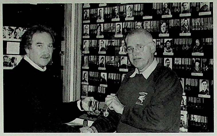 Director of the Airborne Museum Wybo Boersma receives ex-Air Despatcher Ron Clancy’s medals from the hands of Cees van den Bosch. Ron Clancy passed away in October last year.