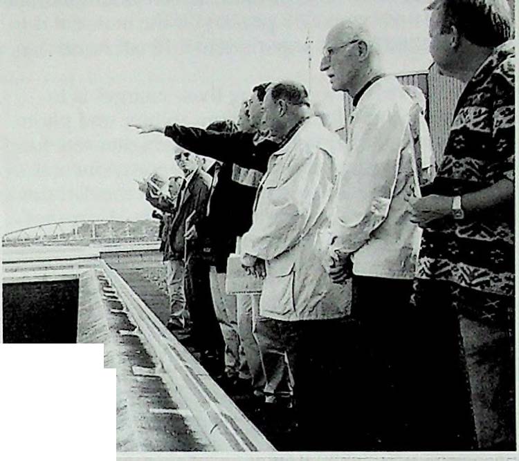 Nijmegen Excursion, 6 October 2001. From the roof of the NLION building Marcel Anker points out the spot where the 3rd Battalion of the American 504 Parachute Infantry Regiment crossed the Waal on 20 September 1944.