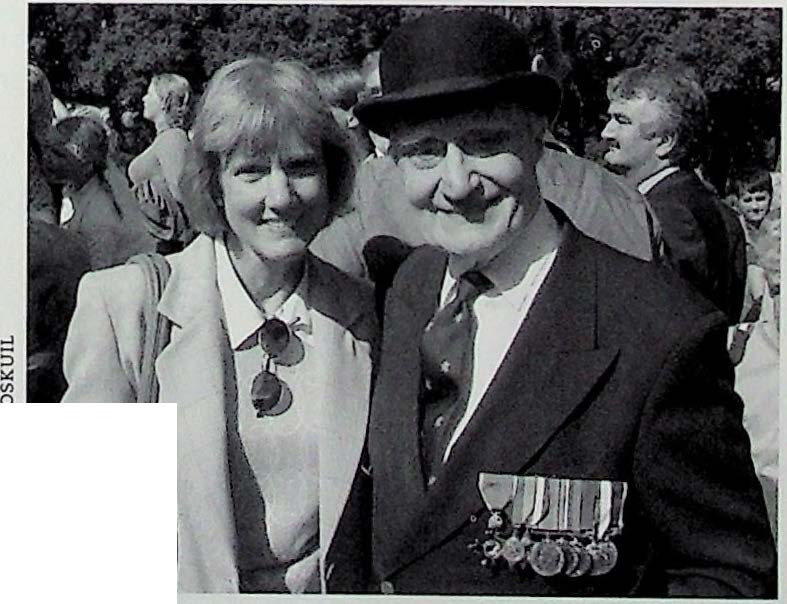 A lookback at September 2004. There was one veteran wearing a traditional bowler hat instead of his beret at the memorial service at the Airborne Cemetery on the 19th. He was Society member Major (retd.) Douglas Goddard, co author of the book ‘112th (Wessex) Field Regiment RA, TA., 1938-1946’. Units of this regiment gave artillery support to the British troops in Oosterbeek from 23 September 1944 onwards. Major Goddard was accompanied by his daughter Tina during the commemoration.