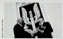 Airborne Museum ‘Hartenstein’, 8 April 2005. After offi cially opening the exhibition about operation ‘Amherst’, Mr Ihpet-Thome was presented with a commemorative plate by director Wybo Boersma. In April 1945, as a 1st Lieutenant, Mr TUpet-Thome took part in the airborne landings in the north of the Netherlands,