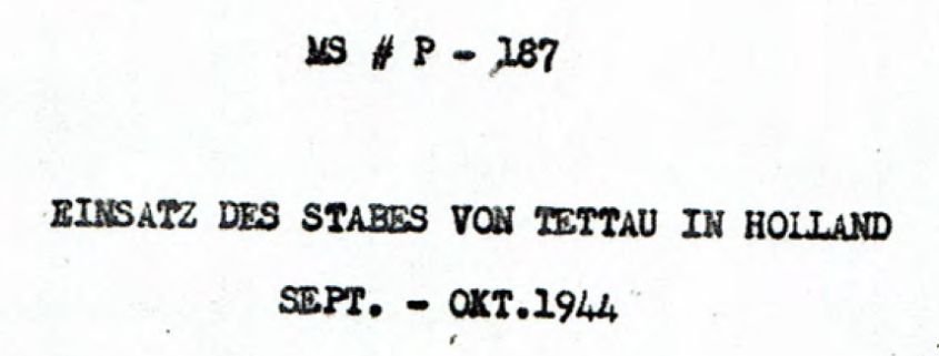 Het rapport van General von Tettau over de Kampfgruppe von Tettau in de periode september – oktober 1944. Geschreven in gevangenschap en bekend als Ethint MS P-187 Einsatz des Stabes […]