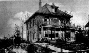 Met Kerstmis kregen alle kinderen cadeaus uit Engeland! Ik kreeg een prachtige doos met plakkaatverf en penselen. Tijdens die vakantie heb ik een “schilderij” gemaakt van een denkbeeldig huis. En zette erboven: “Zoo was het in Oosterbeek”.