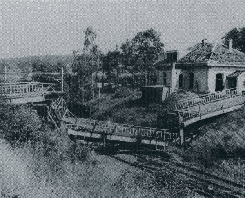 2). The bridge across the railway line from Arnhem to Utrecht at Oosterbeek Hoog Station.
