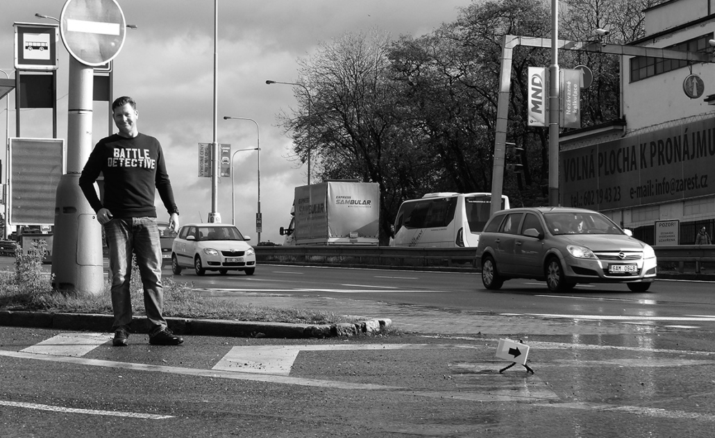 Timmermans op de exacte locatie van de aanslag op nazileider Heydrich in Praag.