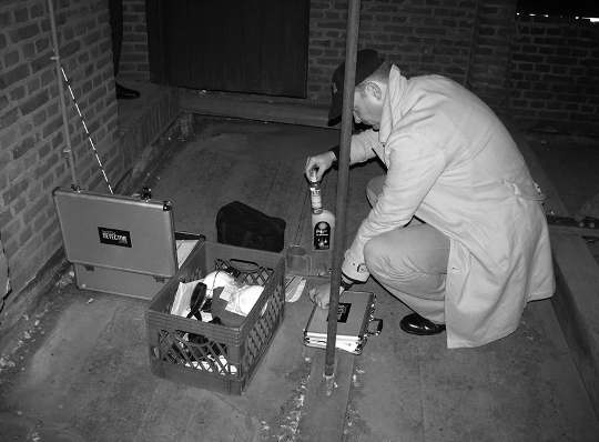 De resultaten mogen dan vaak met wat geluk tot stand komen, Timmermans’ methoden zijn alles behalve toe- vallig. “In zekere zin heb ik gemakkelijker praten dan iemand die een boek schrijft”, zegt Timmermans. “Ik hoef alleen maar het werk van een ander te ontkrachten. Of beter: te toetsen. Daarbij maak ik inderdaad gebruik van methoden en hulpmiddelen die je misschien eerder verwacht in een tv-serie zoals Crime Scene Investigati- on. Ik probeer in ieder geval altijd zo volledig mogelijk te zijn. Zo kwam ik bijvoorbeeld via Crimescene.com aan luminol, een stof waarmee je bloed, zelfs heel oud bloed, blauw laat oplichten. Met een vriend van mij heb ik vervolgens onderzoek gedaan in de toren van de Vlok- hovense kerk in Eindhoven. Het verhaal ging dat daar in de oorlog een Duitse sluipschutter zou zijn gedood. We zijn ter plaatse gaan kijken en hebben de beschreven plek in de toren geluminold. Het enige dat daarbij aan het licht kwam was een roestige spijker. Blijkt het spul een verbinding aan te gaan met álle ijzeroxidatie, ook die in bloed. Zo leren wij ook steeds bij. Het verhaal werd niet veel later overigens ontkracht door de koster.