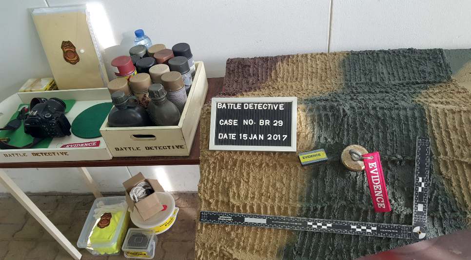 Zijn ‘hobby’ slokt behoorlijk wat tijd op, geeft Timmermans enigszins schoorvoetend toe, maar de waarheid kent geen tijd. En daarbij: het is soms gewoon een razend in- teressante zoek- en experimenteertocht, meent hij. “Mijn vriendin vindt het gelukkig prima, en gaat vaak mee.” Alle monumentale Duitse kanonnen en tanks in Europa fotograferen? Tuurlijk, er staat nog een ‘onontdekte’ PAK in Toulon! Een kijkje nemen in de kelder van het lone house in Bruneval? Zaklampje mee en doen. De plek waar George Patton verongelukte? Dan zetten we de boel toch gewoon even af, geel hesje aan, verkeer tegenhouden en met krijtstrepen de ongelukssite markeren om een beter inzicht te krijgen. En hoe maak je eigenlijk zimmerit? “De bestanddelen staan op Wikipedia. Het is vooral een kwestie van het bindmiddel pas op het laatst toevoegen, weet ik nu”, legt Timmermans luid schaterend uit. Om vervolgens in geuren en kleuren te vertellen hoe je die antimagnetische pasta, door de Duitsers in de oorlog op pantservoertuigen gesmeerd, nu eigenlijk maakt.