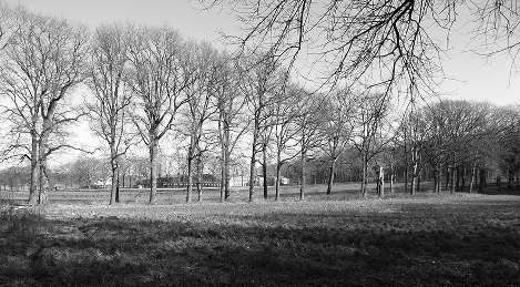 Uitzicht vanaf de reconstructie richting de Duitse linie westelijk van de Van Borsselenweg.