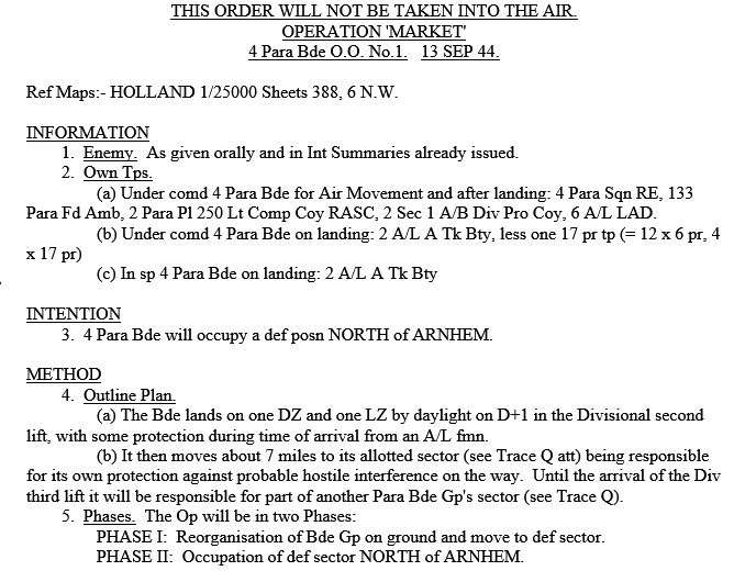 ”Tasks: (i) Occupy high ground in squares 7580 and 7279 to deny enemy direct observation on to ARNHEM.