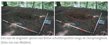 Eén van de originele sporen van Britse schuttersputten langs de Oorsprongbeek. (foto: Leo van Midden)