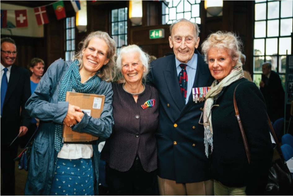 Bij de opening van de speciale ‘Remembrance Garden’ bij de Walhampton Independent Prepatory School near Lymington in Hampshire op vrijdag 30 september 2016, was ook Peter Wilkinson aanwezig. Op de foto poseren v.l.n.r. Claar Ter Horst, Sophie Lambrechtsen-Ter Horst, Peter Wilkinson en Hiltje van Eck. (Foto via Titus Mills)