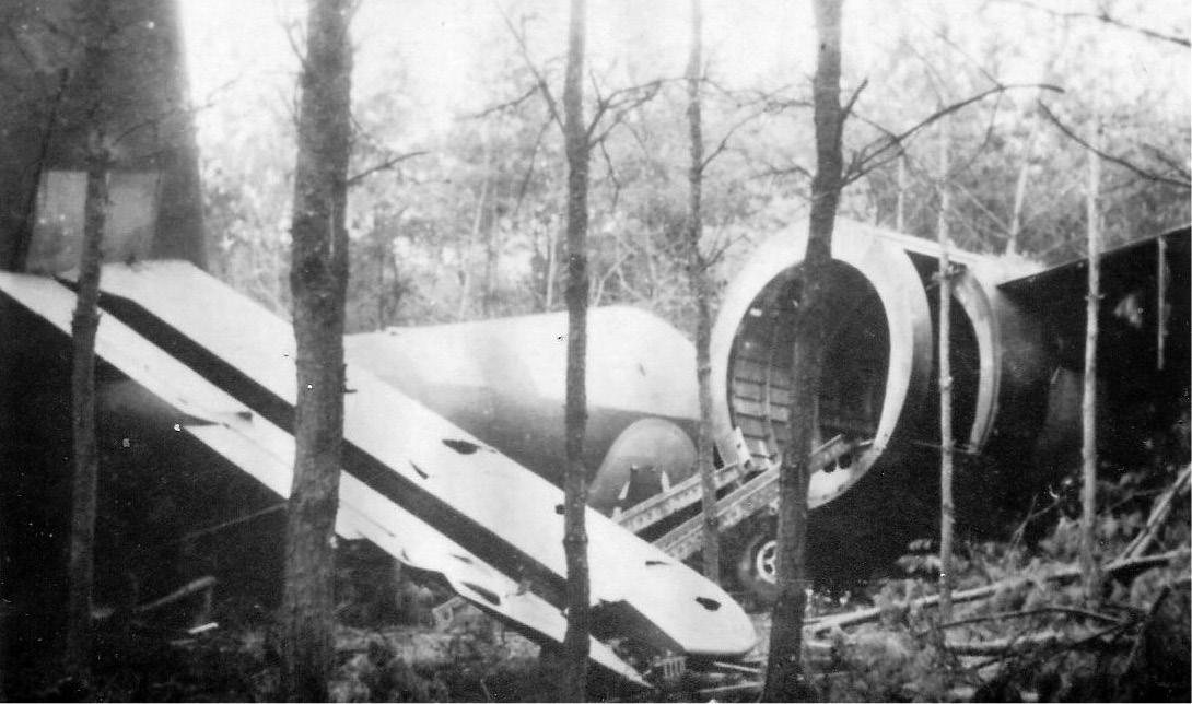 Foto 1: Een glider, geland in de buurt van de huidige camping ‘De Lindenhof’. Links de losgekoppelde staart.
